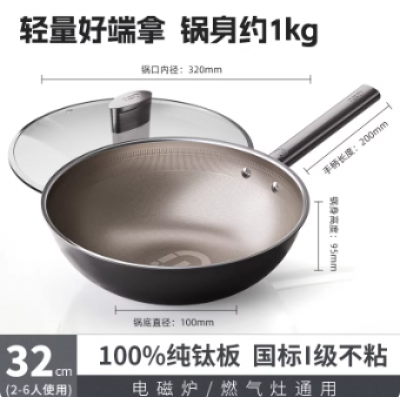 首页 > 日用百货 > 【商超同款】爱仕达轻量纯钛炒锅不粘锅电磁炉燃气家用炒菜锅
