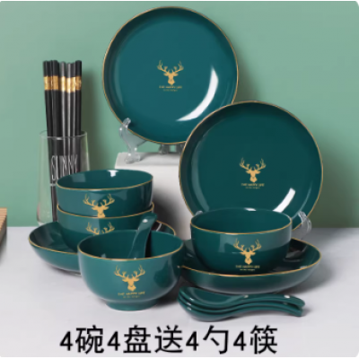 首页 > 日用百货 > 轻奢祖母绿碗盘套装2025新款家用米饭碗菜盘送勺筷组合情侣用套装