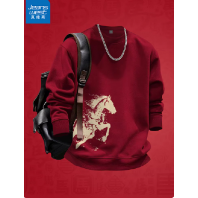 首页 > > 马年本命年卫衣男款冬季2026新款酒红色上衣男士新年外套X